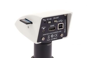 La cámara digital HD para microscopio con interfaz de montura C ofrece imágenes en directo de muy alta definición a un máximo de 30 fps y con una resolución de captura estándar de 5Mpx. La cámara puede utilizarse de forma autónoma sin ordenador o conectarse por cable USB.